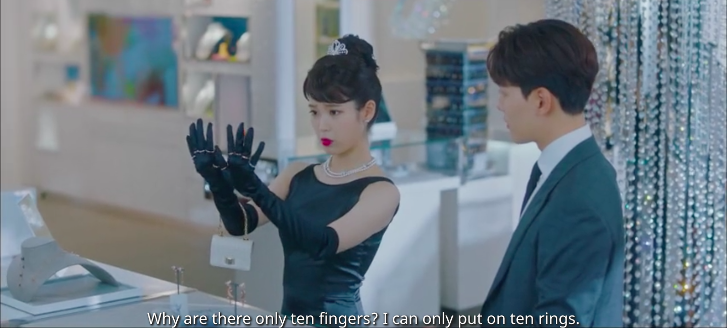 And not just in terms of wardrobe, she's much more interesting than he is. In Crash Landing the two leads save one another from bullets, trauma, all the things. By contrast, the male lead in Hotel del Luna lacks any sort of tragic backstory, like he'd live fine without ever meeting her. There could've been much more around him losing his father and not knowing his mother but they're barely featured at all. Which is fine, the plot is more about Man Wol, the female lead. But it just means his character is sort of lame. Maybe less so throughout the show, but his increased competence with ghosts is not that interesting, and his personality growth is basically just a reflection of hers.